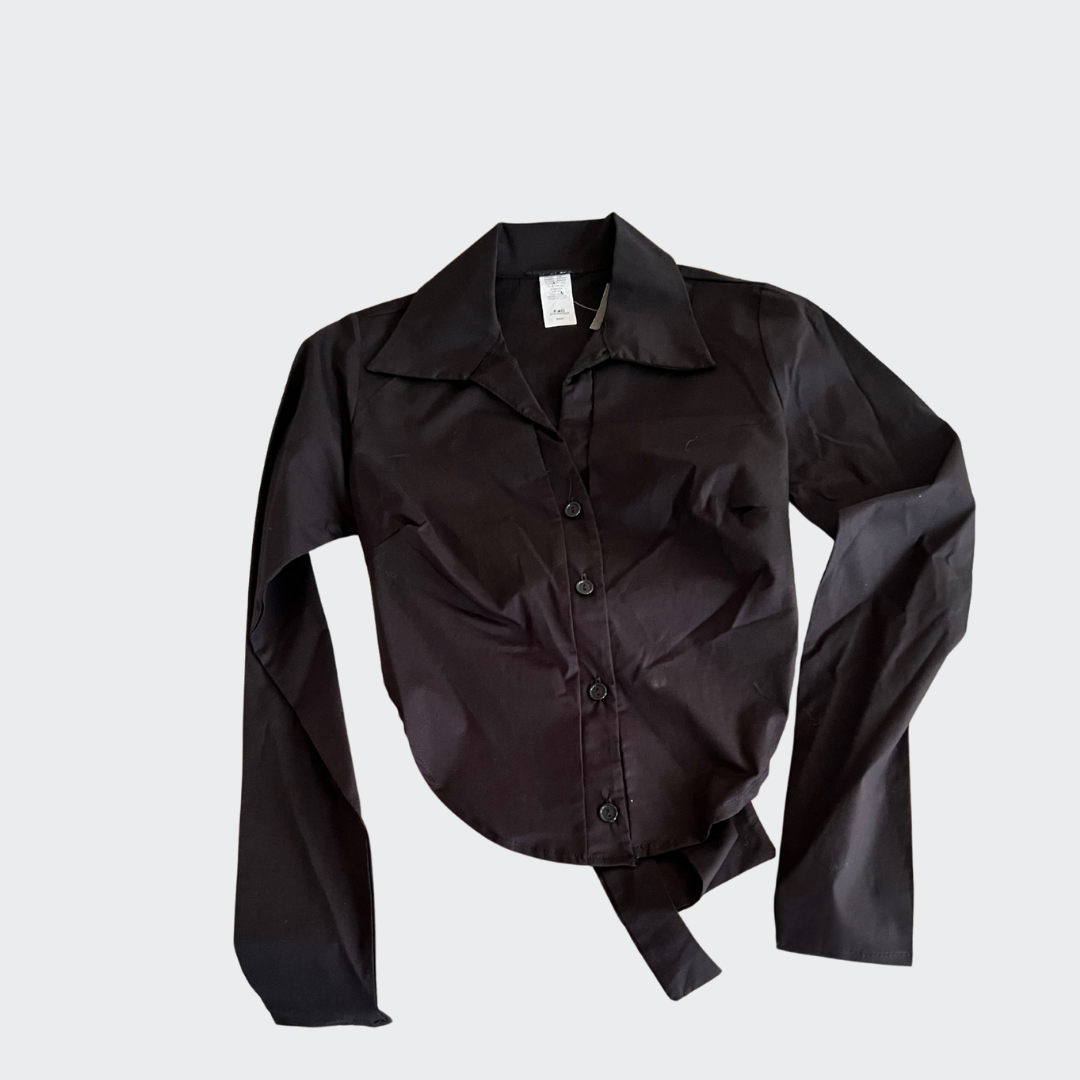 Make a statement in our "Boardroom Beauty" Button-Up Crop Top! This sophisticated piece combines classic tailoring with modern flair, featuring a chic collar and trendy front tie detail.